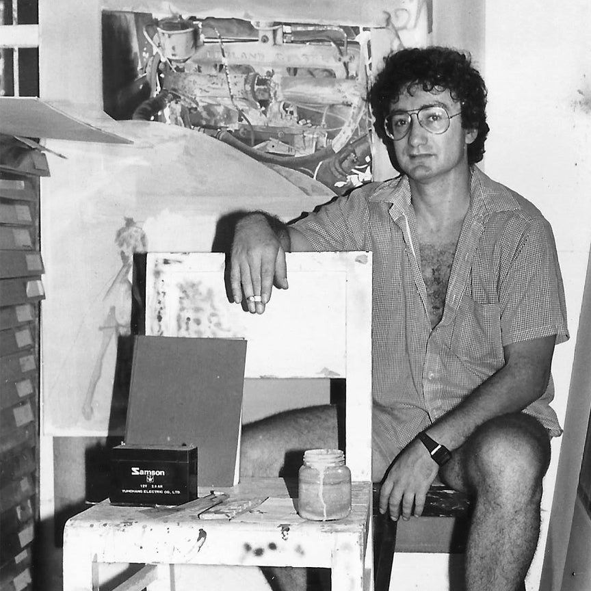 Following two years of extensive activity that included many exhibitions, the Radius Gallery was closed due to the bank requiring the space. Griffit continued to teach at Hamidrasha Art School in Ramat Hasharon and staged a solo exhibition at the Herzliya Museum curated by the museum’s director the late Yoav Dagon, who recognized the importance of the movement. Griffit received much praise from the public and his paintings enjoyed commercial success. He worked with assistants on intricate drawings of hyper-realist cars. In the catalog of his car paintings, Ran Shchori wrote, “The world of his paintings exists in its own right, due to the fictitiousness of his reality and the reality of his fictitiousness. He walks in the narrow realm between sentimentality and cold intellect, between perfect technical control and deliberate randomness, between sensitive subtlety and blatant vulgarity.” Griffit wrote at the time about his approach to nostalgia: “It’s like scribbling on a wall and erasing it, but the stain remains. I want to present seriousness that the irony is already embedded within it...I do not miss the longings of others. But Tel Aviv remains like the stain on the wall, and maybe love too.”